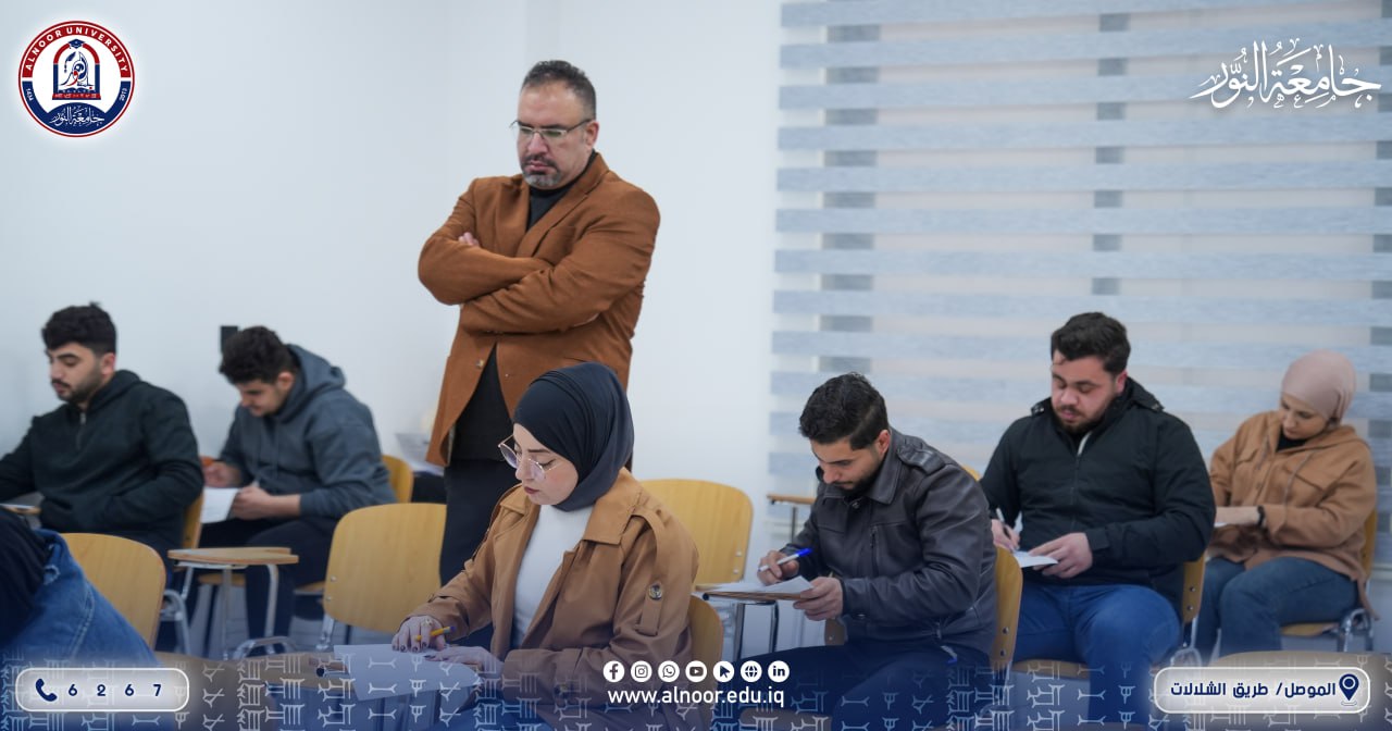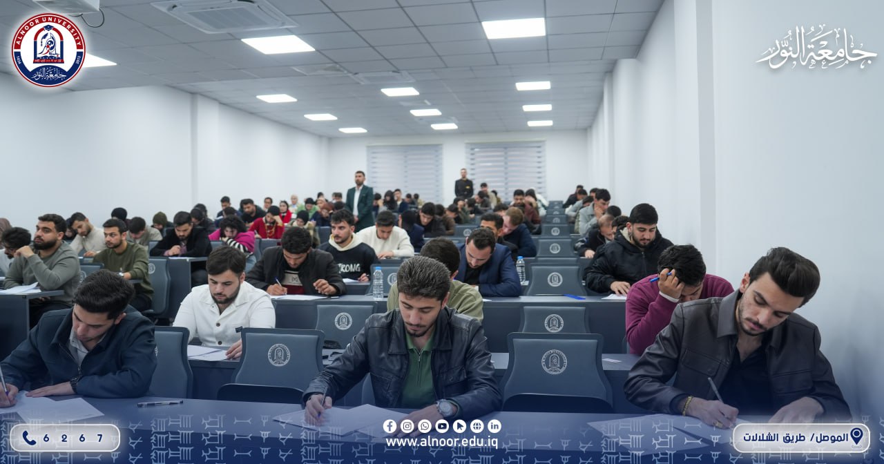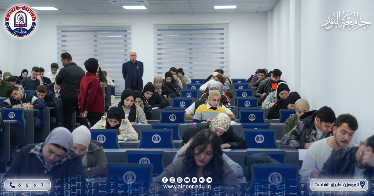 تفقد رئيس جامعة النور الأستاذ الدكتور ياسين طه الحجار صباح يوم السبت الموافق 14 شباط 2026 سير امتحانات نصف السنة وامتحانات نهاية الكورس الأول لطلبة المرحلة الأولى في كليات الجامعة وأقسامها العلمية.