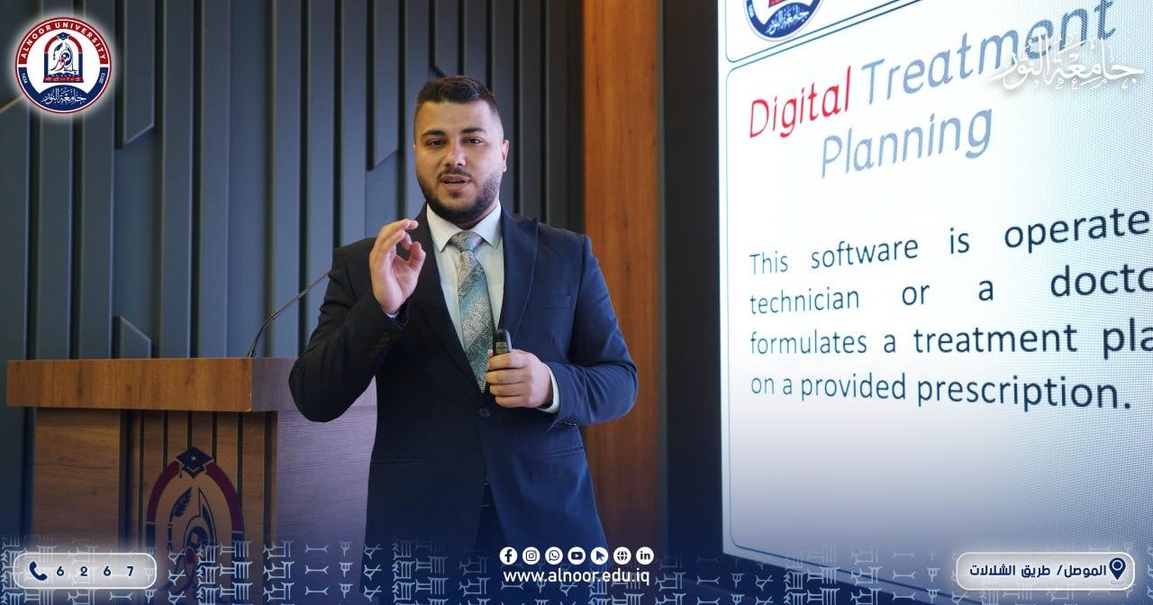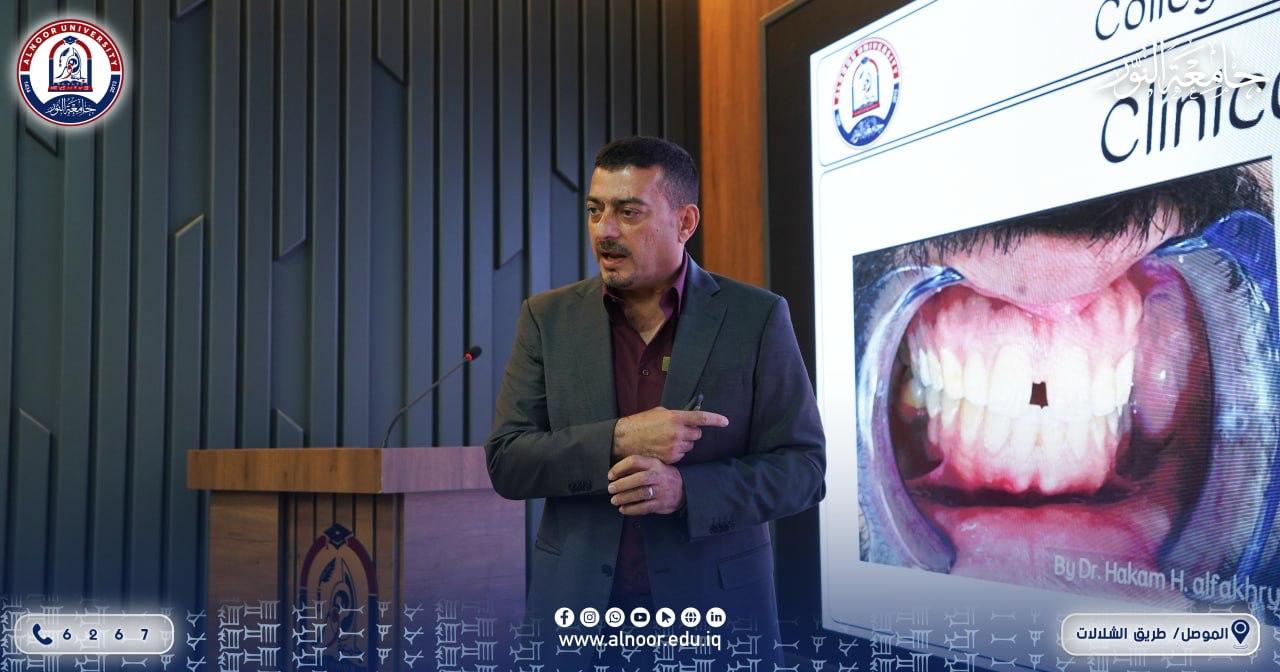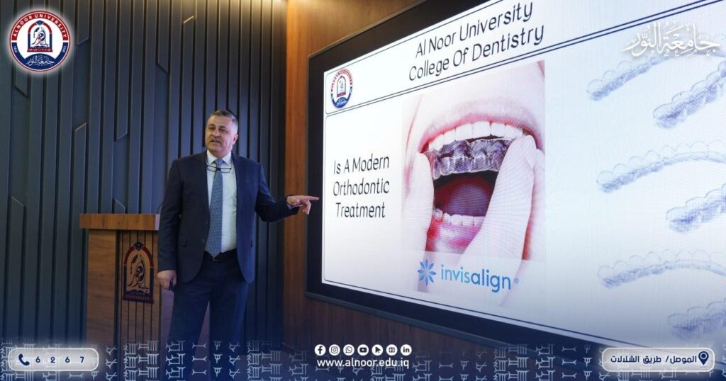 بإشراف الاستاذ الدكتور طلال حميد السلمان عميد كلية طب الاسنان في جامعة النور نظمت الكلية بالتعاون مع مركز التعليم المستمر في الجامعة يوم الاحد الموافق 2026/4/26 ورشة عمل تحت عنوان (تقرير حالة باستخدام قوالب تقويم الاسنان الشفافة) حاضر فيها الدكتور زيد سالم النجفي والدكتور حكم هشام صباح وطلبة المرحلة الخامسة يزن فراس عبد المجيد ويزن حسين اسماعيل و متي ريان عزيز ..